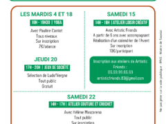 Chaque mois à Sauviat, retrouvez Hélène et initiez vous au crochet ou à la couture : pour apprendre les bases ou vous perfectionner, et réaliser vos propres créations. Que vous… Read more »